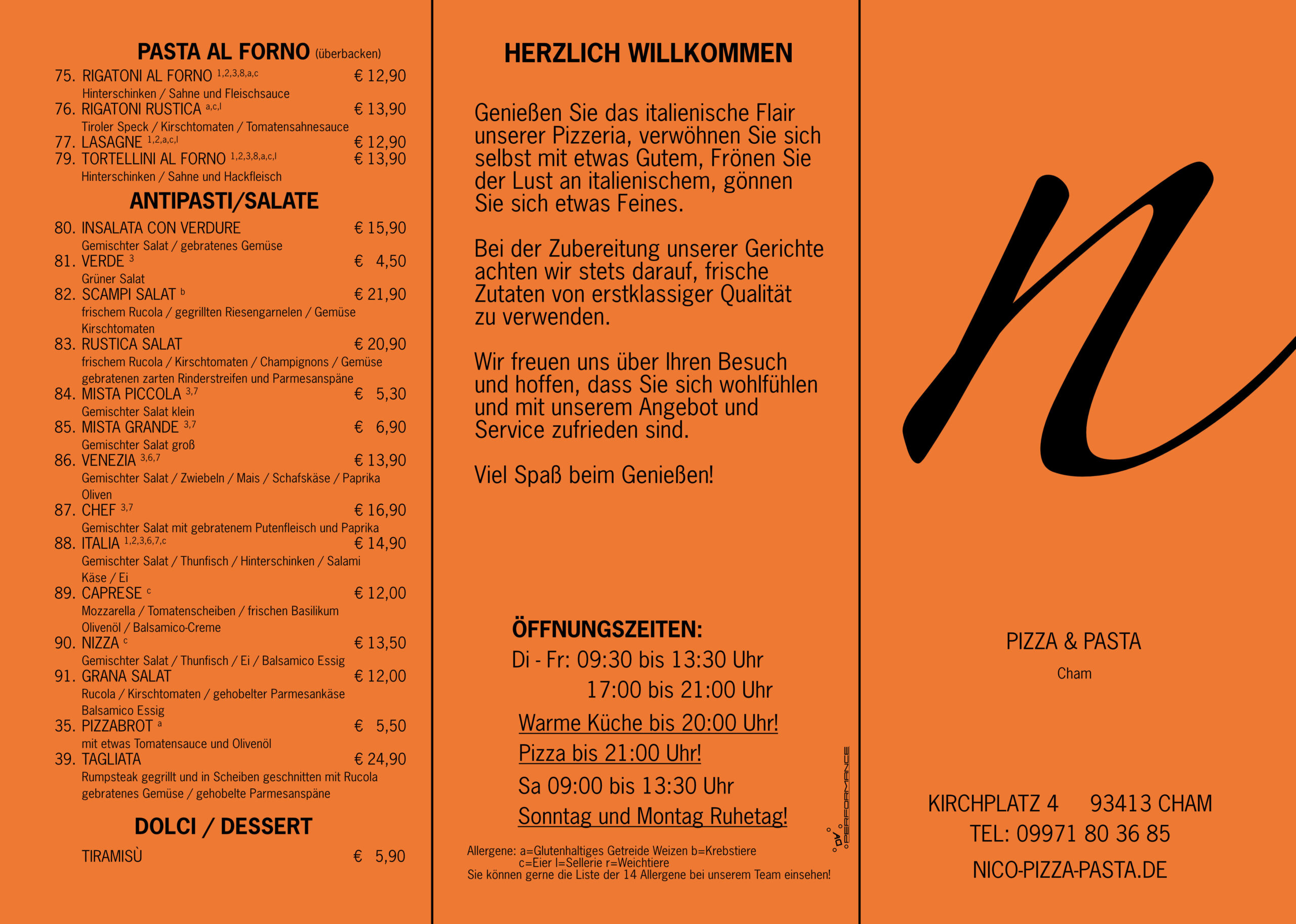 Nico Pizza Pasta Cham Speisekarte zum Mitnehmen 2025Herunterladen